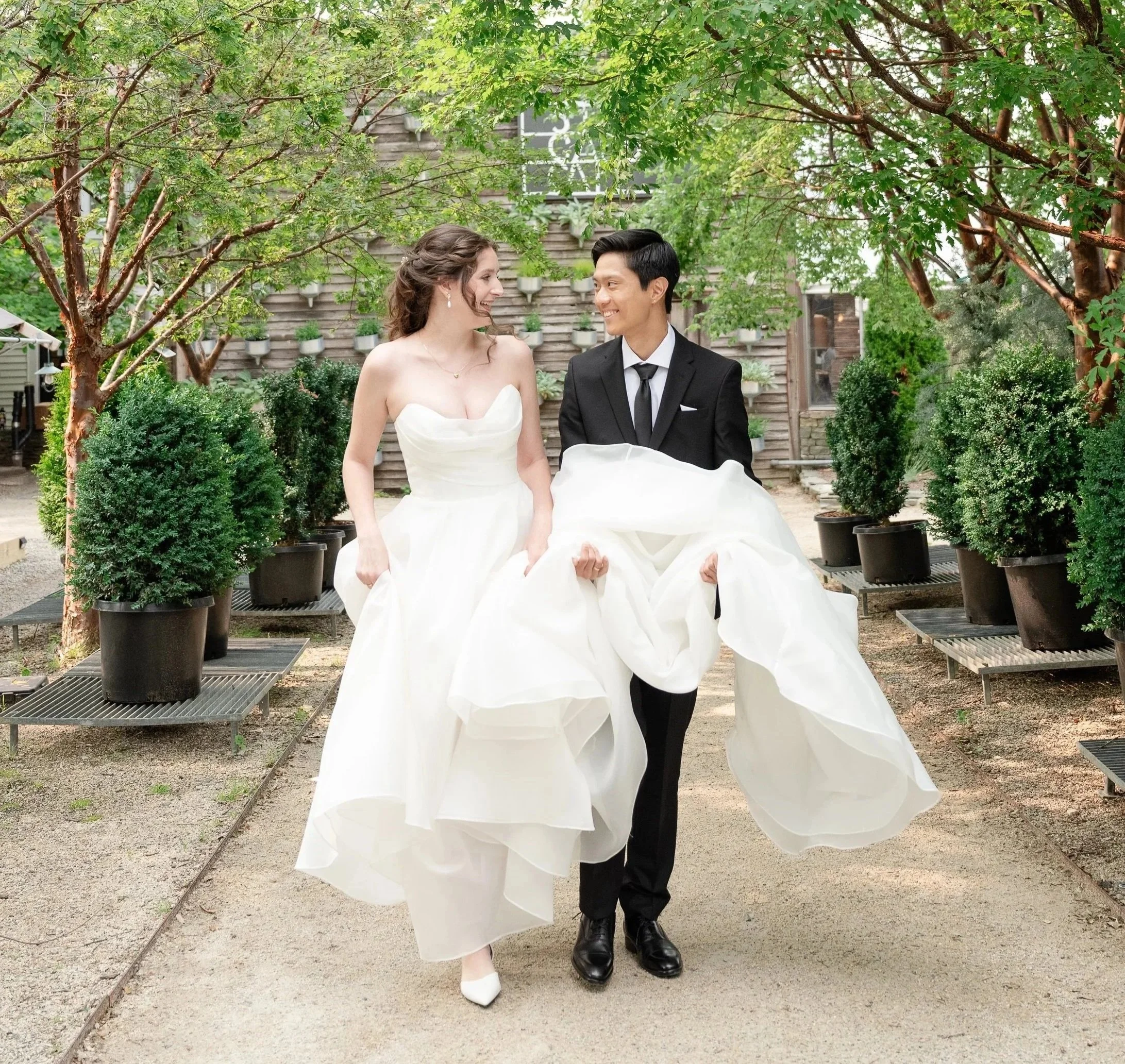 We captured every magical detail of Hannah and Jamie’s celebration. Their vows were exchanged outdoors beneath a timeless gazebo surrounded by lush greenery and earthy textures, creating an intimate garden-inspired setting. Thanks to a flawless setup and ahead-of-schedule planning, the couple enjoyed extra time for photos and even their own cocktail hour. The day was filled with personality and joy, highlighted by a surprise ABBA performance from the bride’s mother and a playful twist when the groom tossed a Pokéball instead of a bouquet. Every moment was unforgettable.